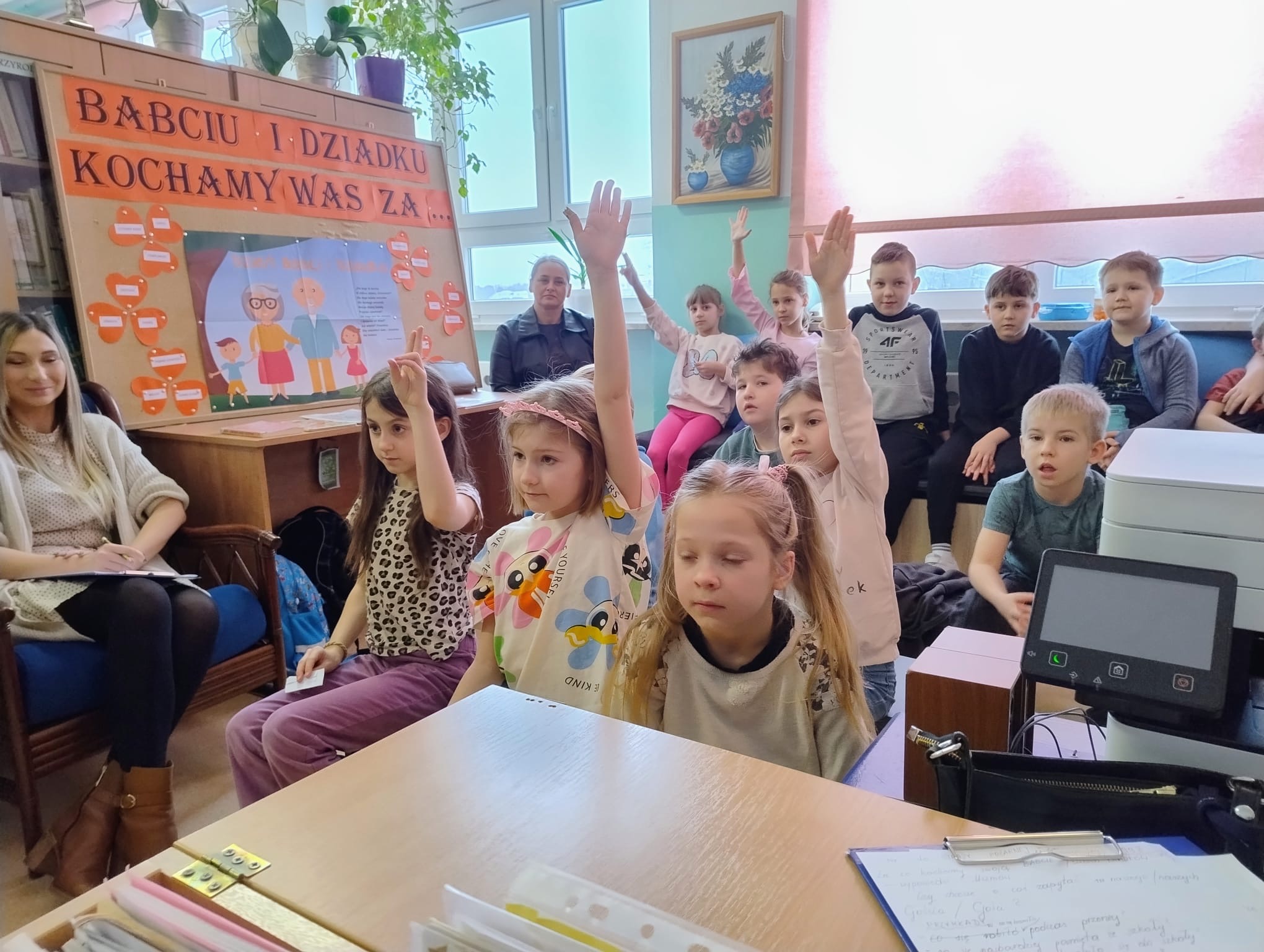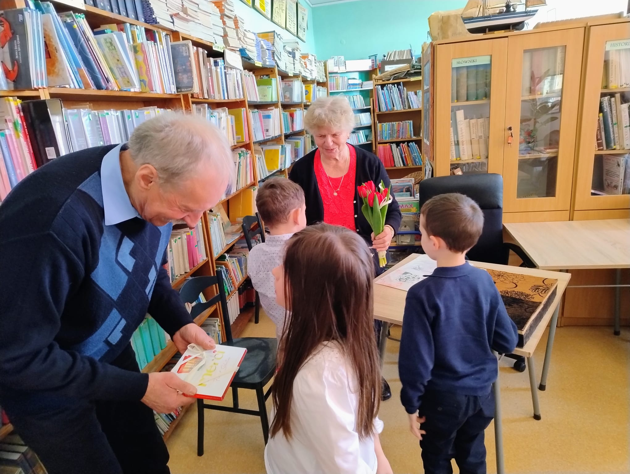 Niektóre książki mają w sobie niezwykłą moc i zostają w naszej pamięci na całe życie. To lektury, które poruszają emocje. Mamy nadzieję, że wszystkim dzieciom zapadła w pamięć lektura „Jak Wojtek został strażakiem” przeczytana przez zaproszone babcie i dziadka. A gościliśmy w bibliotece Panie: Alinę Apanasowicz, Zofię Szarawagę, Kazimierę Bodnar, Bernadetę Śliwińską i Pana Bogumiła Giberta. Dzieci z dużym zainteresowaniem słuchały i z ciekawością oglądały teatr ilustracji Kamishibai. Dziękujemy Gościom za wspólnie spędzony czas z uczniami klas pierwszych i drugich.