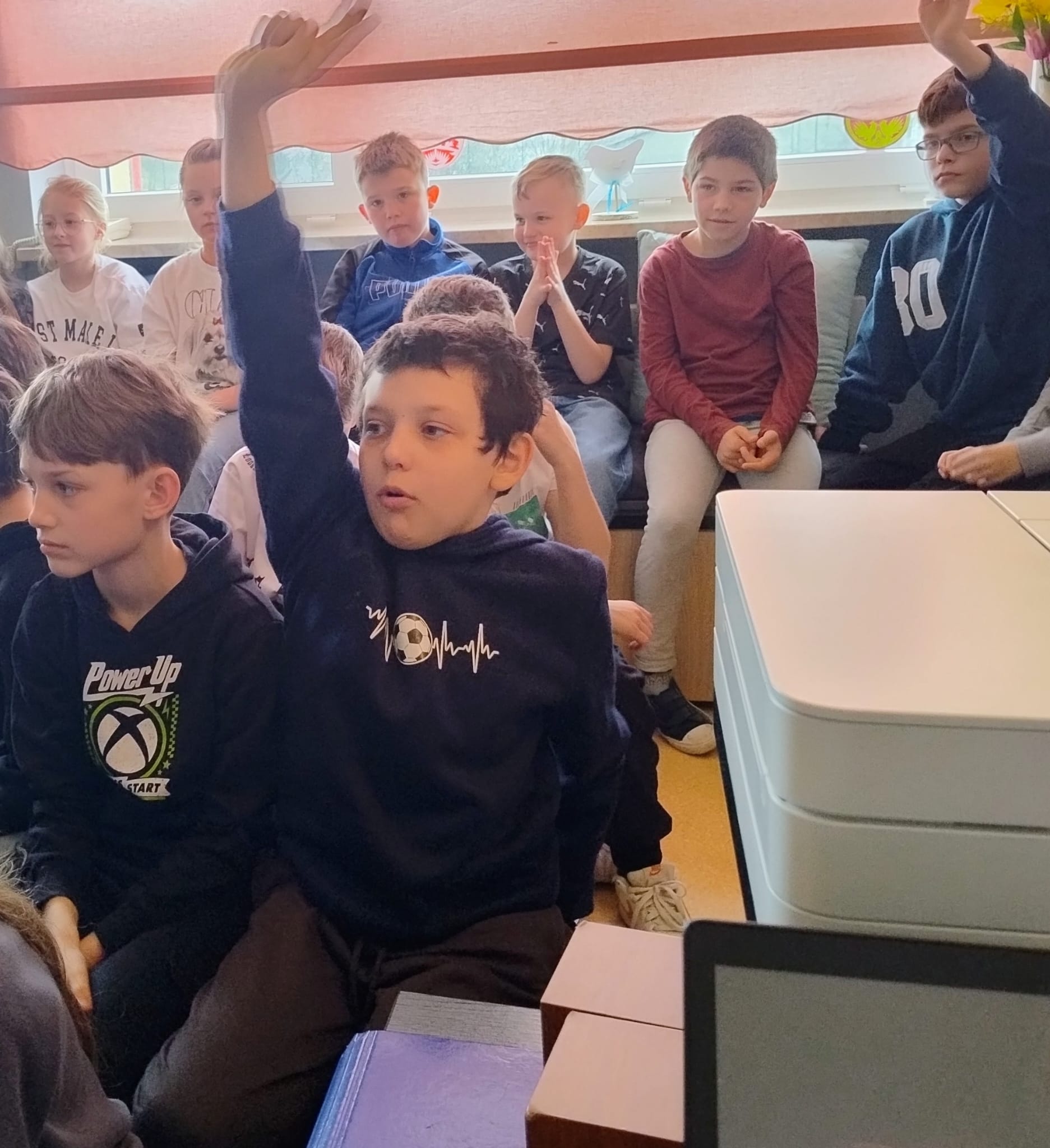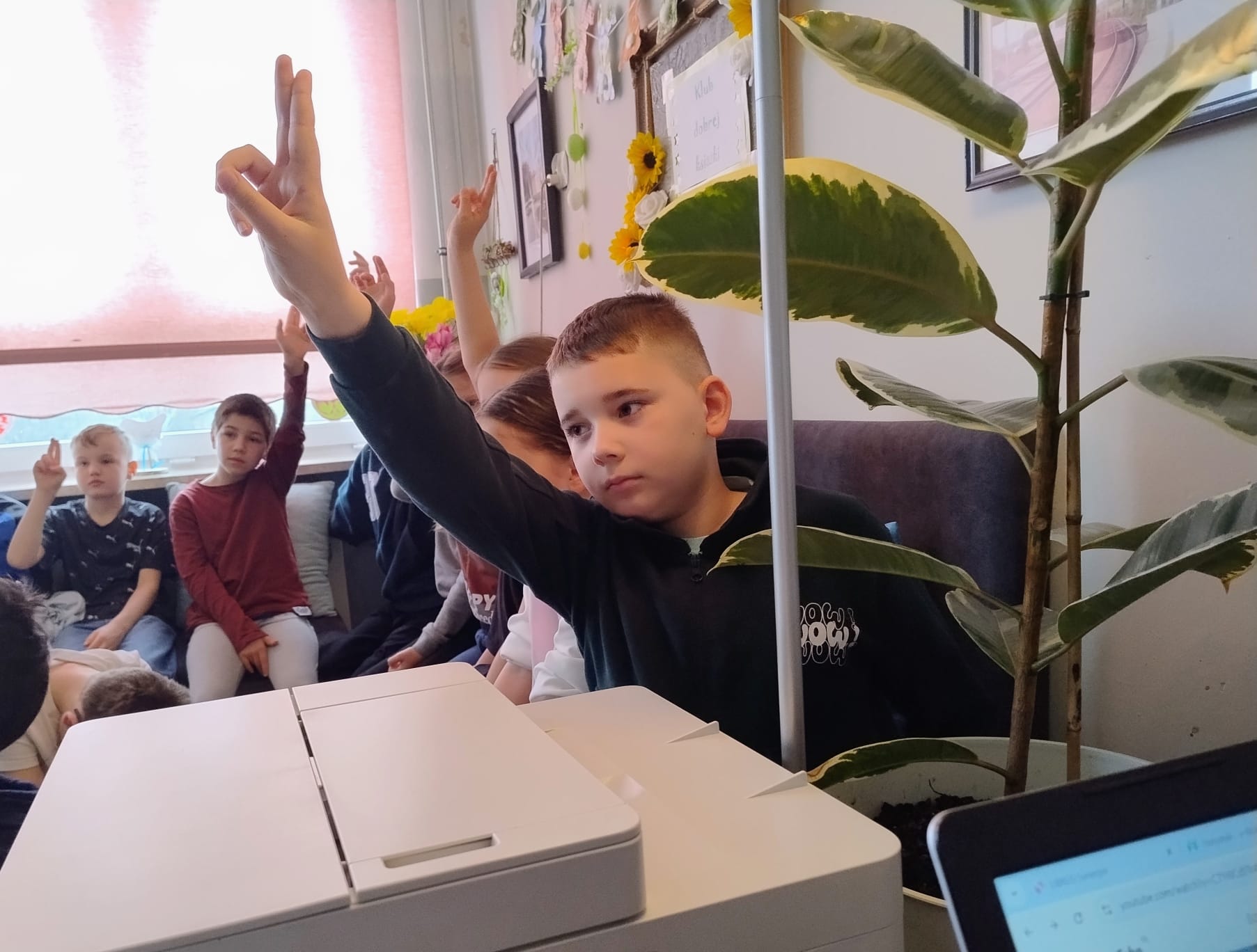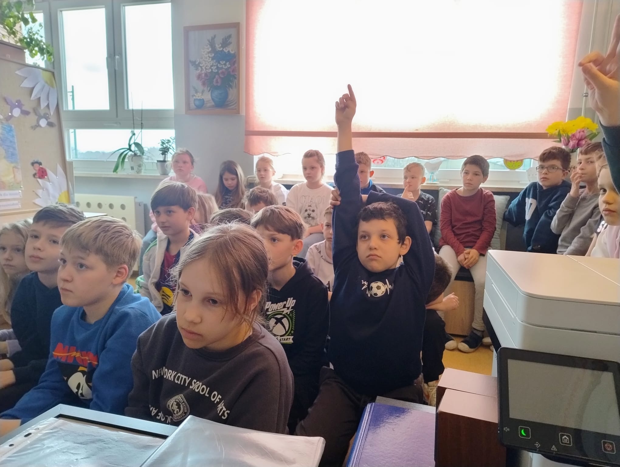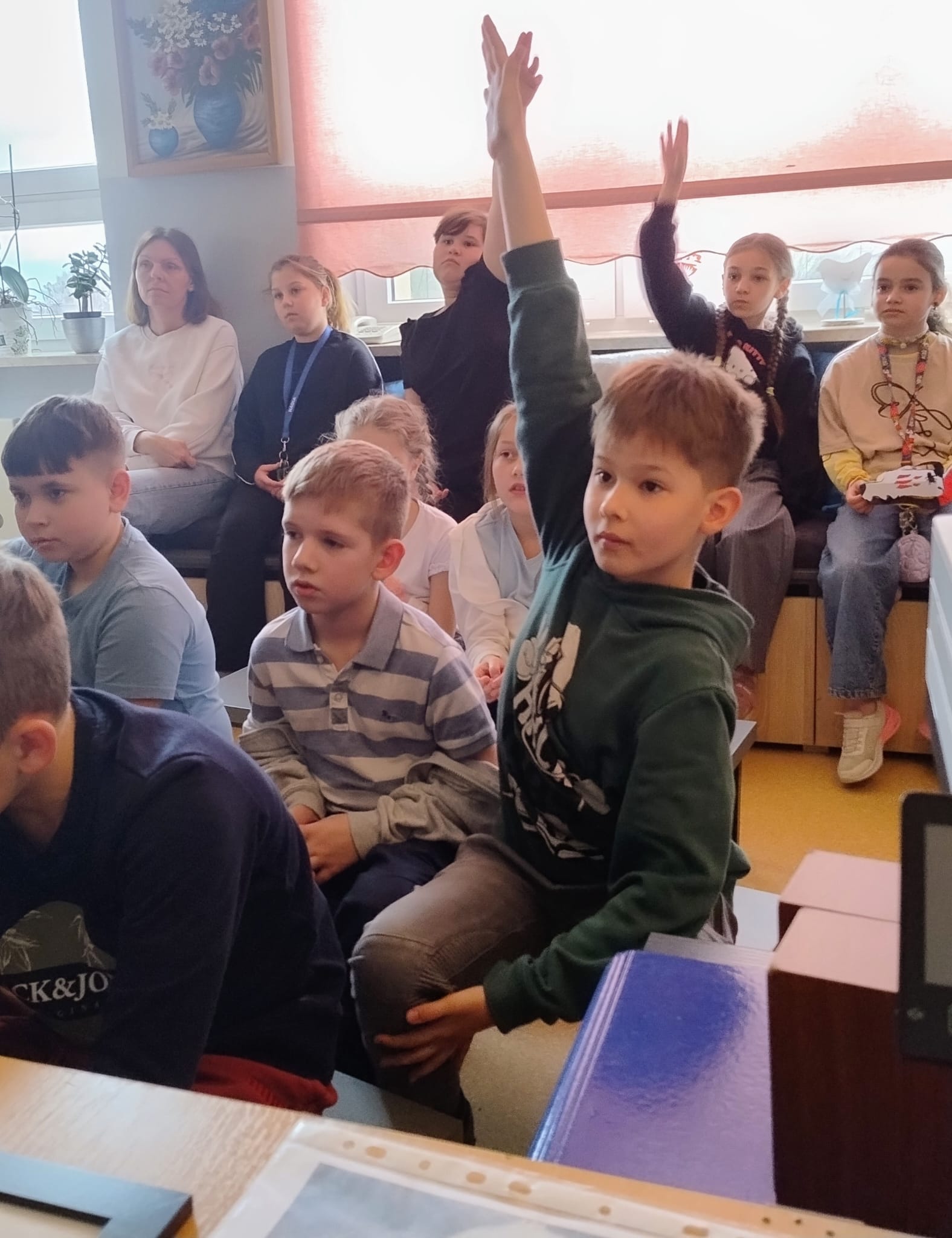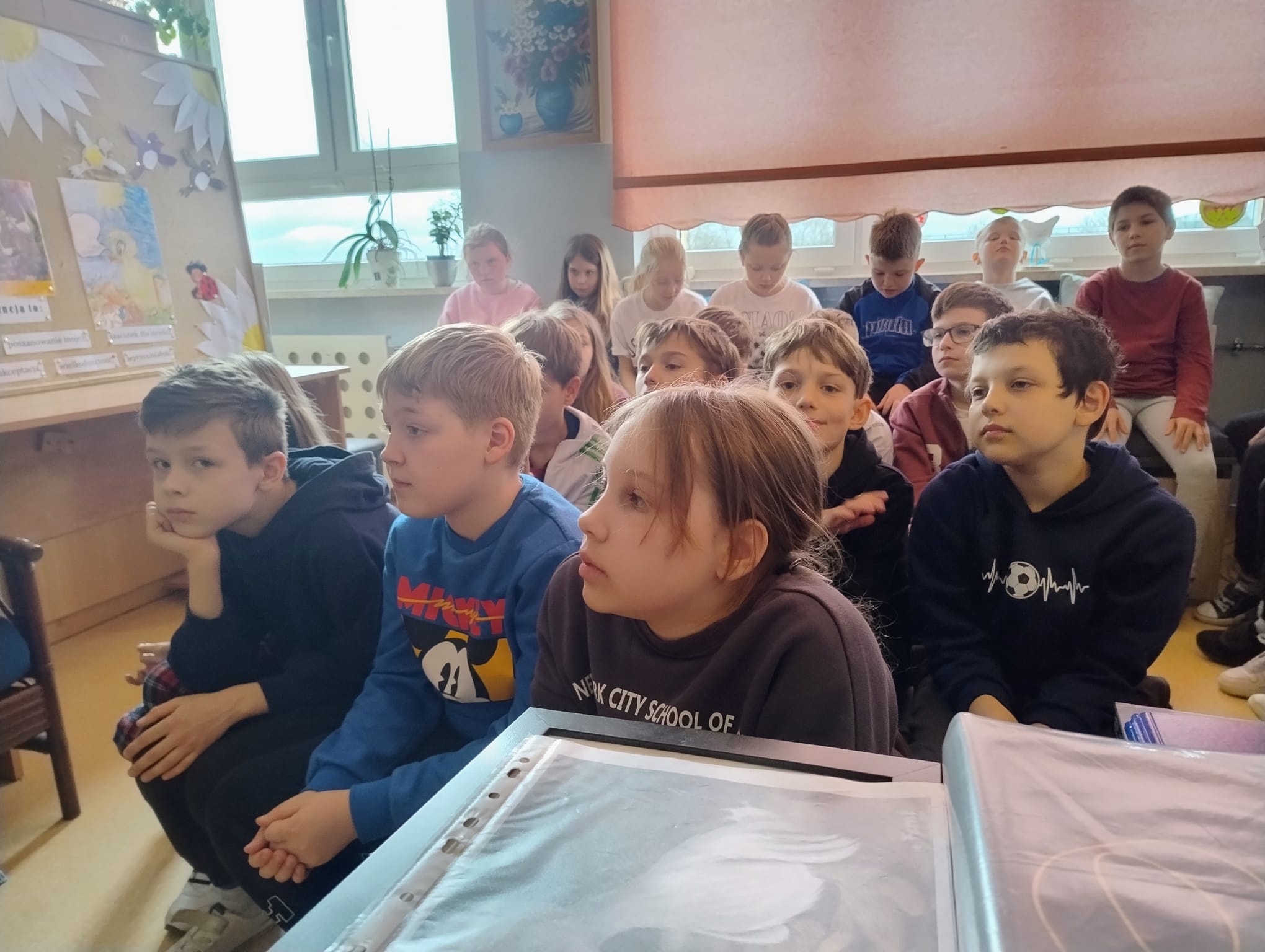 Hanna Ilnicka i Karina Kośkiewicz, uczennice z klasy szóstej, pięknie przeczytały baśń "Brzydkie Kaczątko" Hansa Christiana Andersena. Uczennice wykorzystały teatrzyk kamishibai. Natomiast Hanna Borek zadawała młodszym kolegom i koleżankom pytania i zagadki. Zajęcia prowadzone były w formie dramy. Dzieci wykazały się pomysłowością i udowodniły, że potrafią improwizować oraz wchodzić w różne w role.
