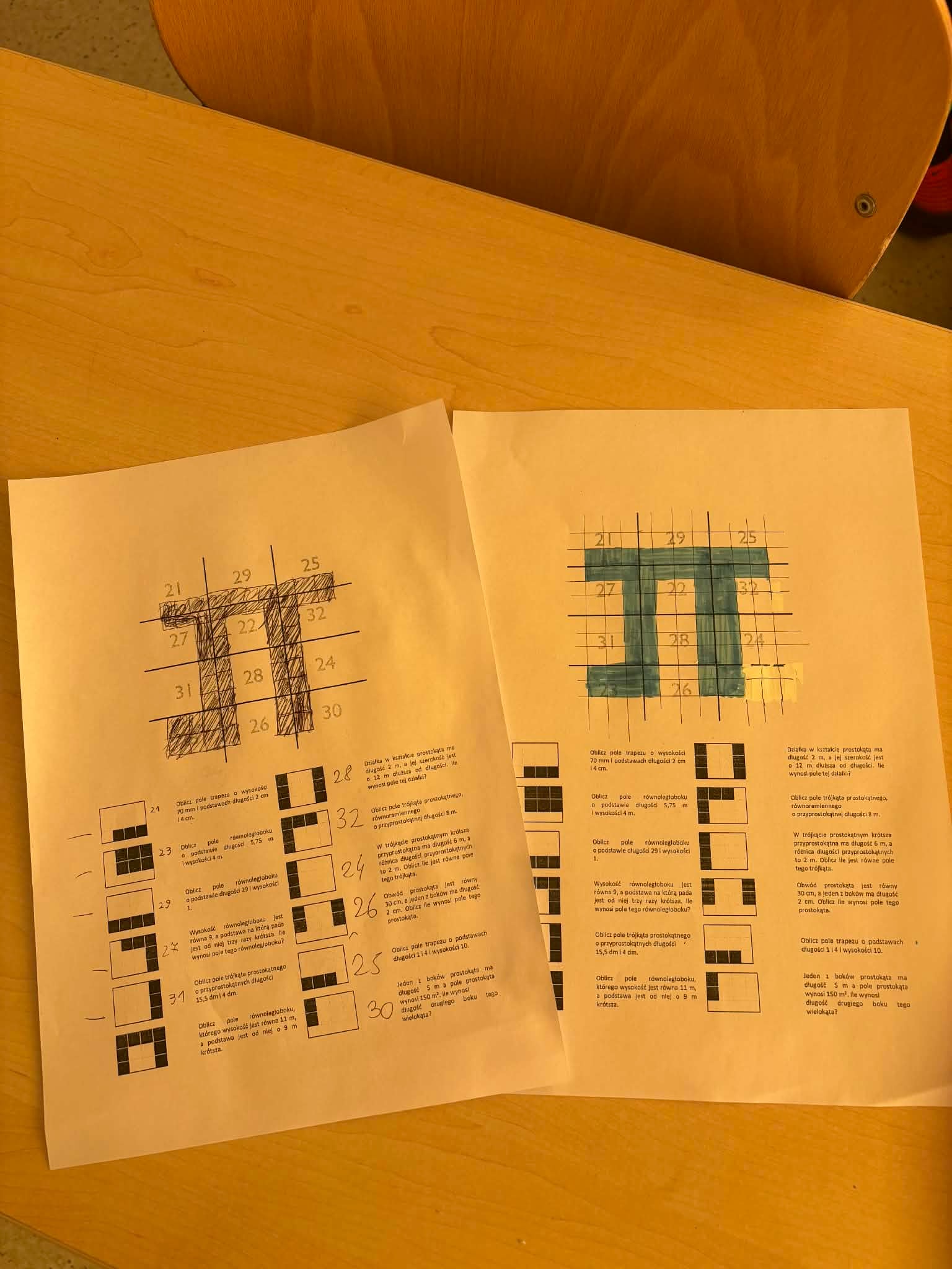 Matematyczne zagadki i pola figur – obliczaliśmy, rysowaliśmy i kolorowaliśmy, aby odkryć ukryte wzory.