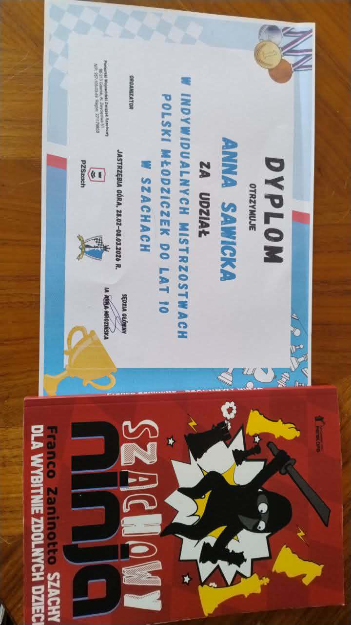 Trójka dzieci z województwa zachodniopomorskiego brała udział w rozgrywanych w Jastrzębiej Górze Mistrzostwach Polski Młodzików do lat 10 w szachach klasycznych. W tym zacnym gronie znalazła się uczennica naszej szkoły Anna Sawicka z klasy 3 A. Ośmiodniowy maraton szachowy Ania zakończyła jako 55 zawodniczka w Polsce.